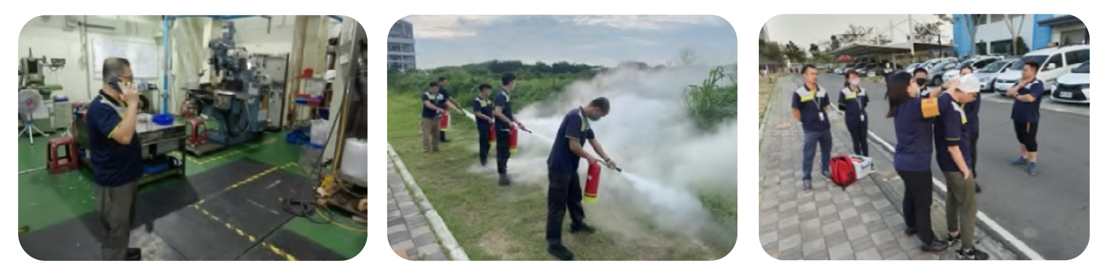 為降低突發意外對人員安全及環境造成的衝擊,家登精密依循「緊急應變管制程序」規範執行應變處理,以人員安全為首要原則,迅速進行災害控制、防止擴大與妥善處理。並定期辦理各類緊急應變演練,內容涵蓋火災、地震及緊急疏散集結等,強化員工對緊急狀況的應對熟悉度與實戰反應能力,藉此降低事故風險。為提升員工自我防護意識,公司於新進人員安全衛生教育訓練中強化危害辨識與退避行為之宣導。若現場有立即發生危險之虞,工作者得於不危及他人安全前提下,自主停止作業並撤離至安全區域,並即時向直屬主管通報,以保障自身及同仁安全。