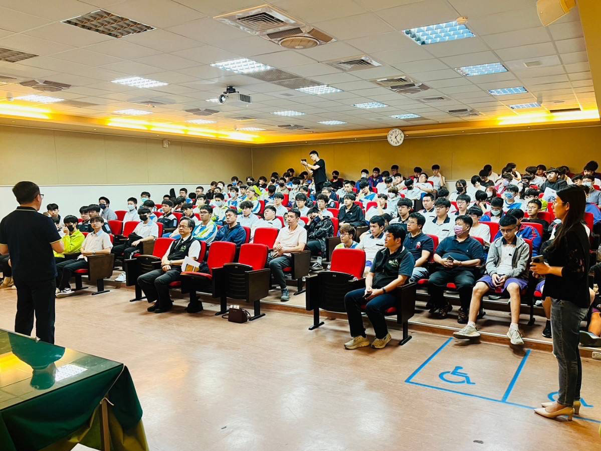 ▲ 人資處長演講, 鼓勵同學們在專業領域持續精進