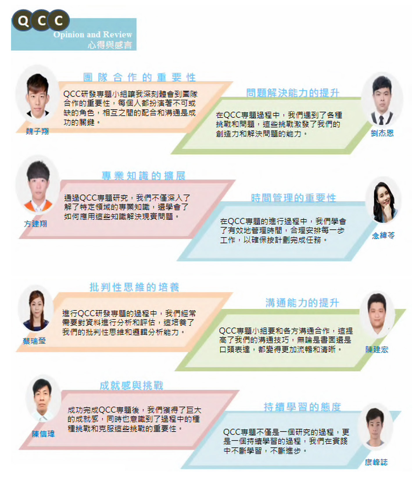 品質意識深入團隊公司經營層積極透過多元管道推動品質意識與文化落實。品質議題之推動與檢討,係藉由品質檢討會議、QCC成果發表大會、職能教育訓練、產線日會、部門週會及主管會議等機制,促進跨層級交流與持續改善。此外,公司透過月會、餐廳電子看板、公告欄、內部入口網站「董總的話」、「Bill有約」課程等溝通管道,持續深化企業價值觀與品質意識之傳遞。