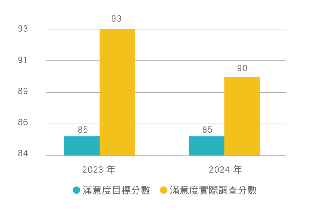 | 滿意度(%) | 92% | 89% | 89% | 90% | 90% |