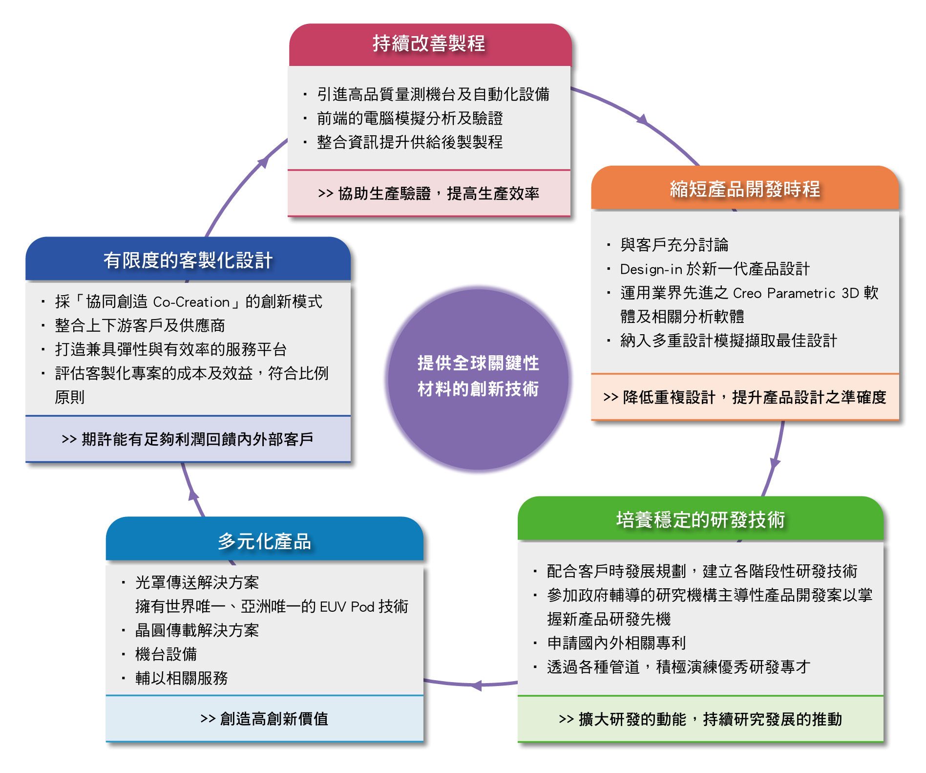 家登精密亦主動制定4p4c政策,以維護客戶夥伴關係,甚至主動發掘客戶在製程中良率問題,提供所需載具解決方案,提升客戶製程良率,開創新藍海市場。